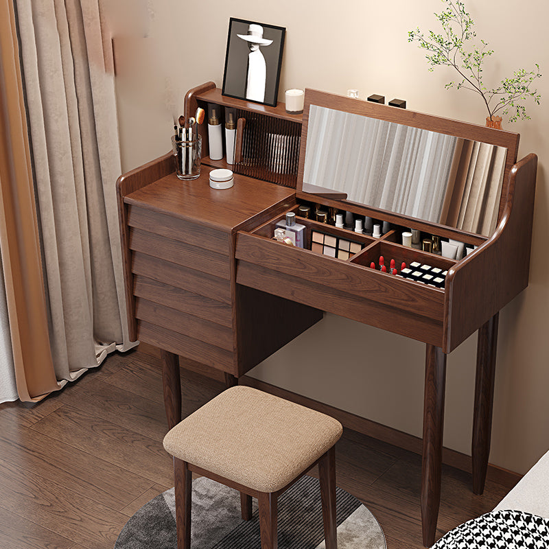 Traditional Wooden Makeup Vanity Table with Stool for Bedroom