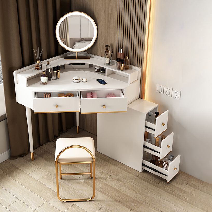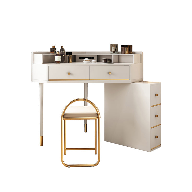 White Makeup Table Stool Set with Drawers for Bedroom 33.5" High