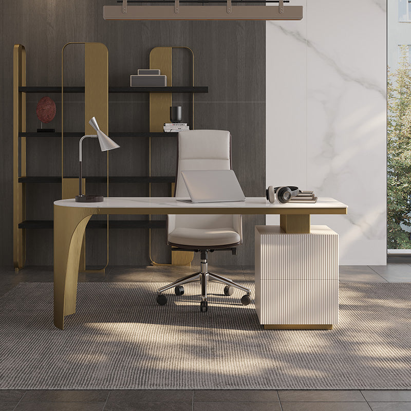 Descripción de oficina de la oficina de acabado antiguo escritorio de computadora glamoroso con 2 cajones de almacenamiento
