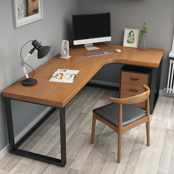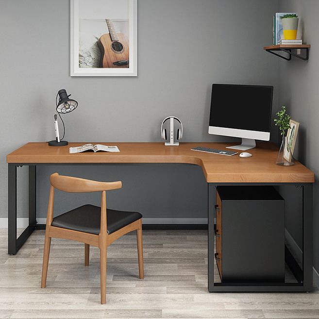 Escritorio de escritorio de escritura de esquina marrón contemporánea escritorio de madera de madera de pino
