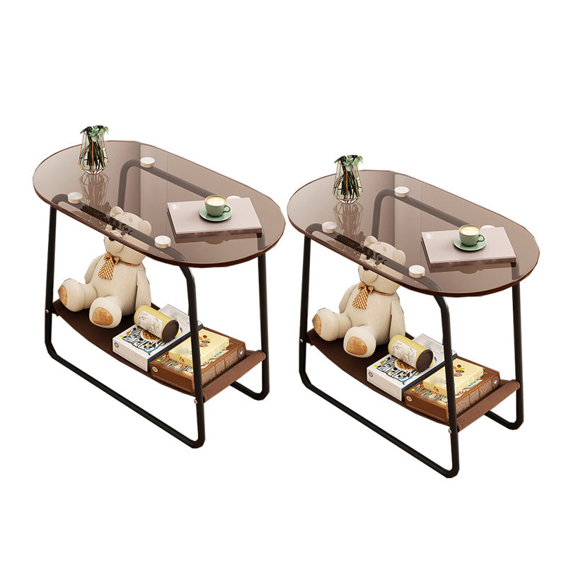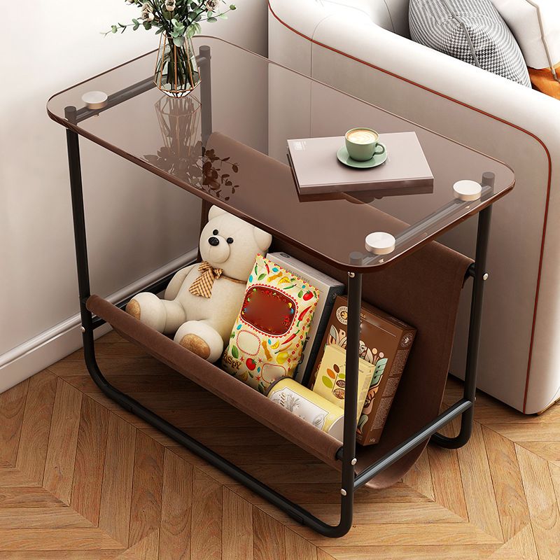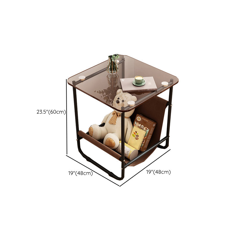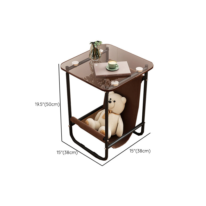 Mesa de acero de acero de acero contemporánea de vidrio marrón