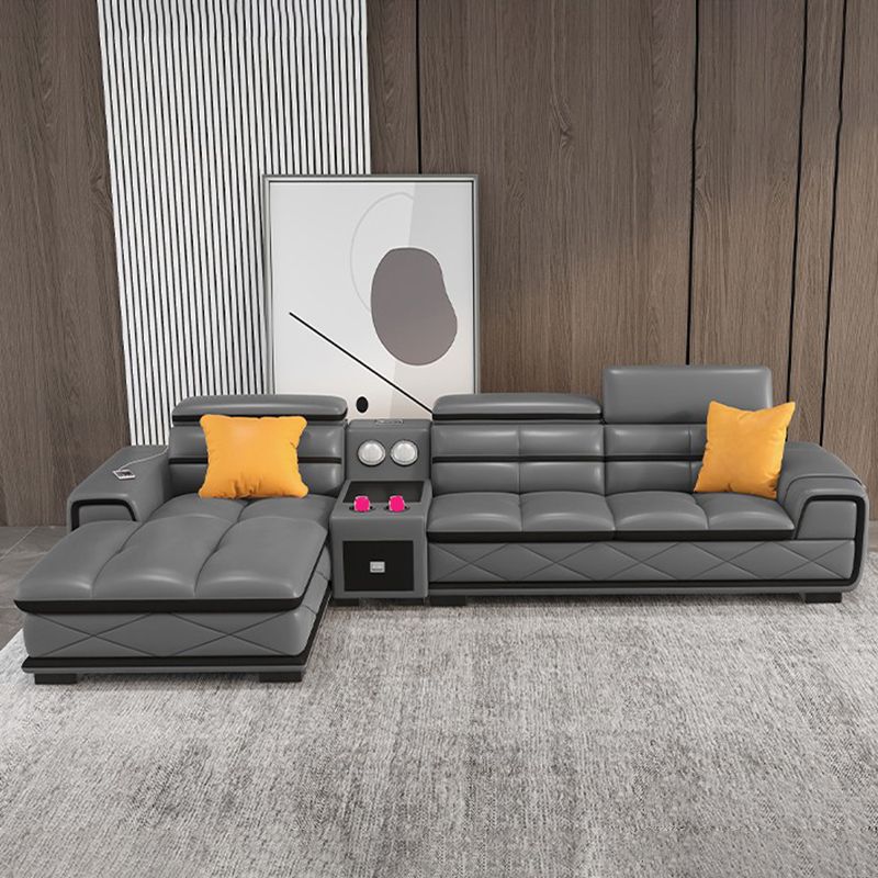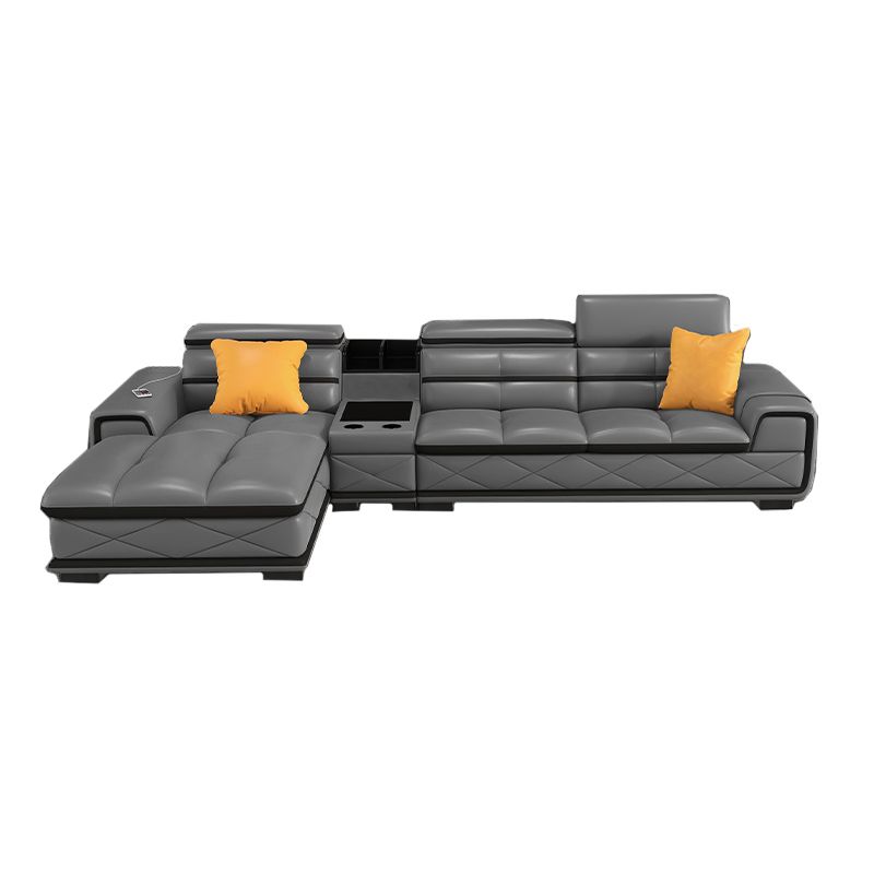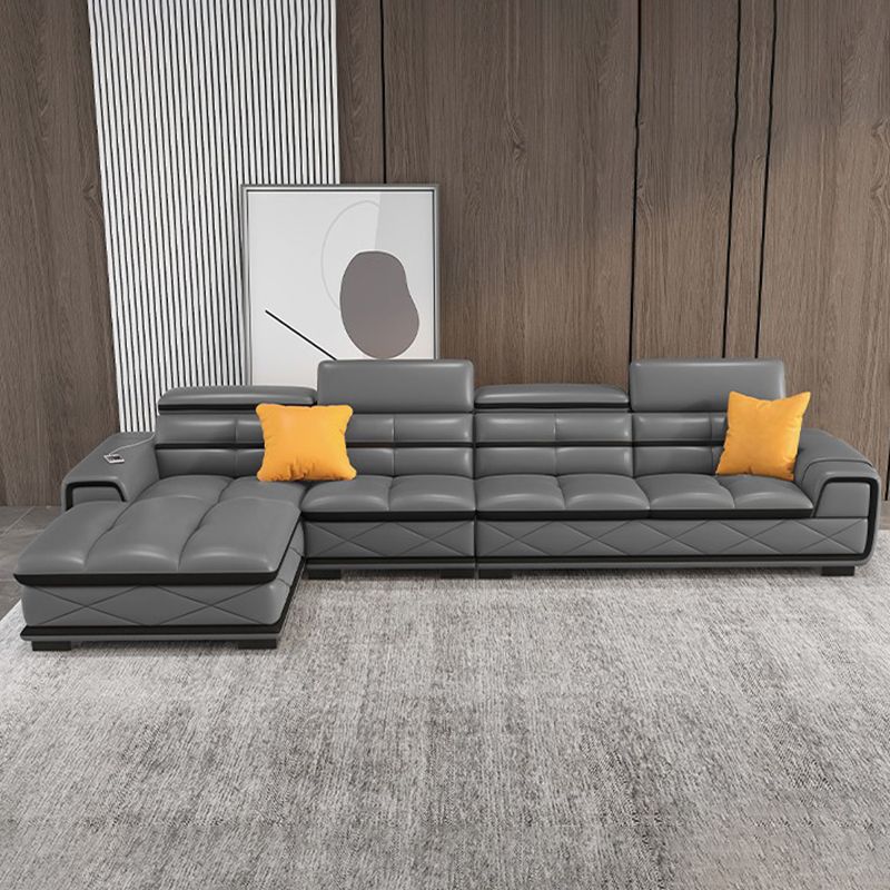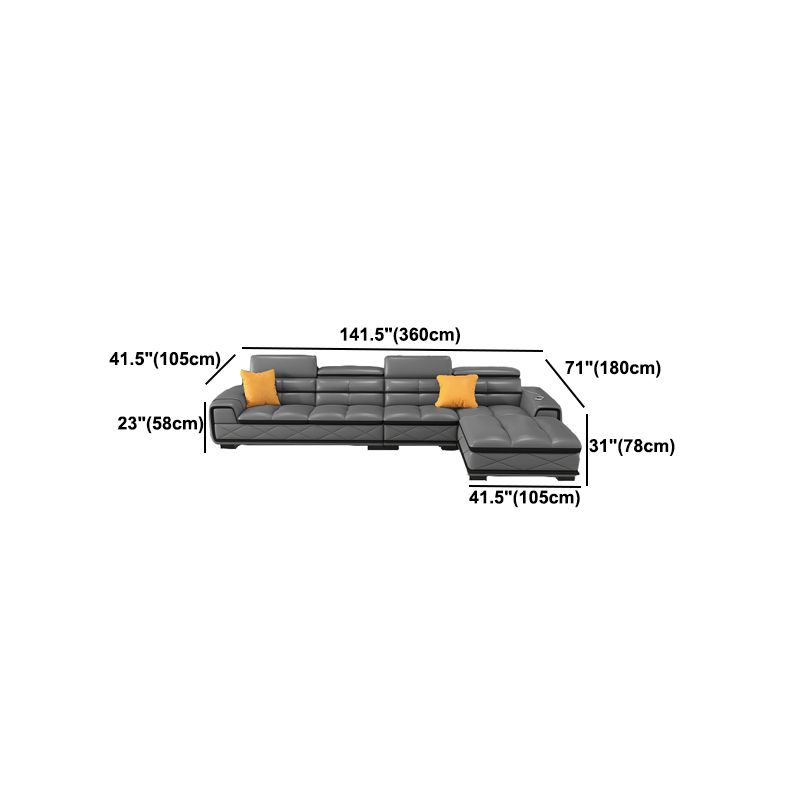 Sofá de cuero genuino estacionario de brazo cuadrado de nube contemporánea