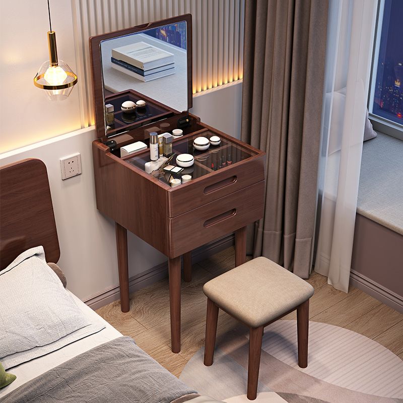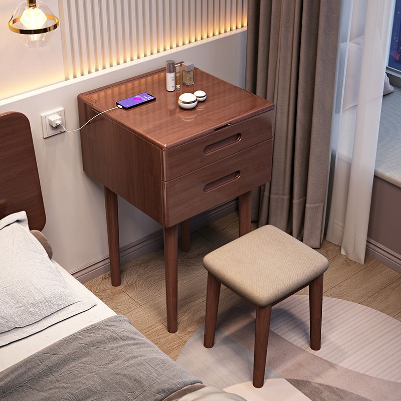 Consejo de tocador de tocador de maquillaje de madera maciza contemporánea con 2 cajones