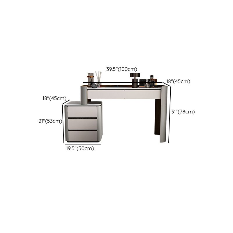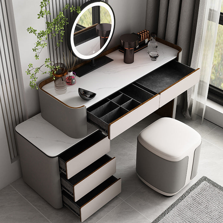 Contemporáneo con cajón de cuero de cuero gris iluminado espejo de cajón tocador