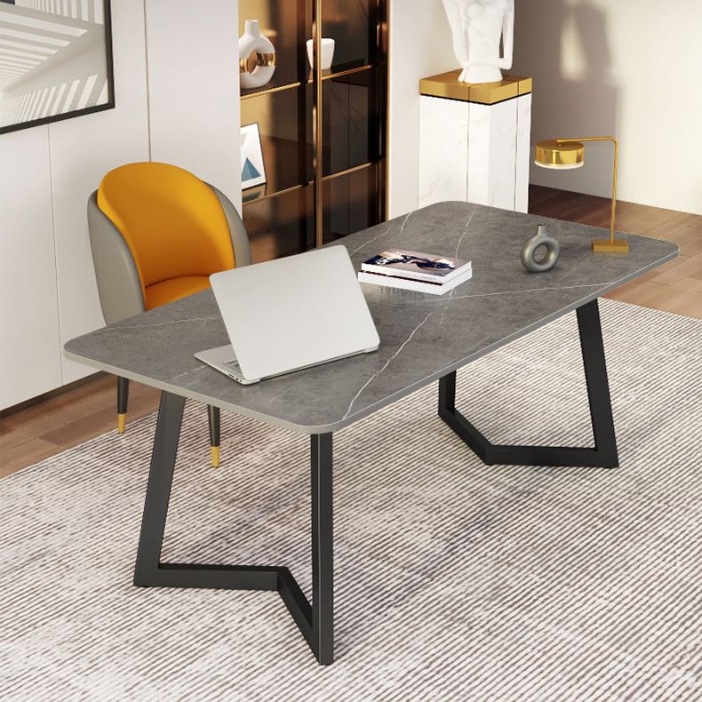 Escritorio de oficina curvo escritorio de computadora de acabado antiguo con patas de metal