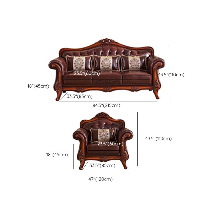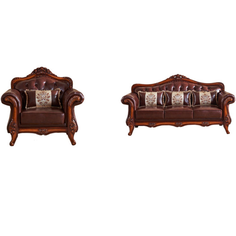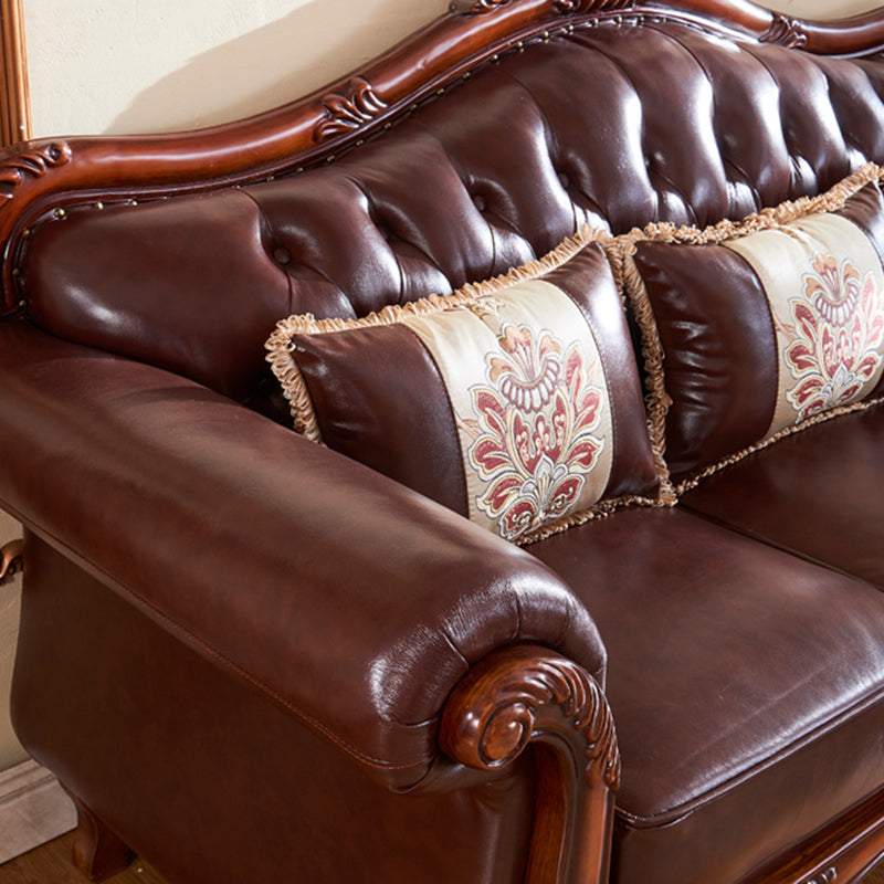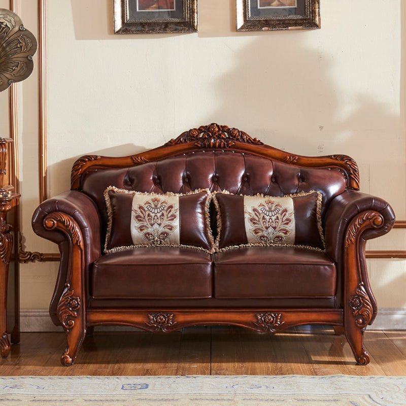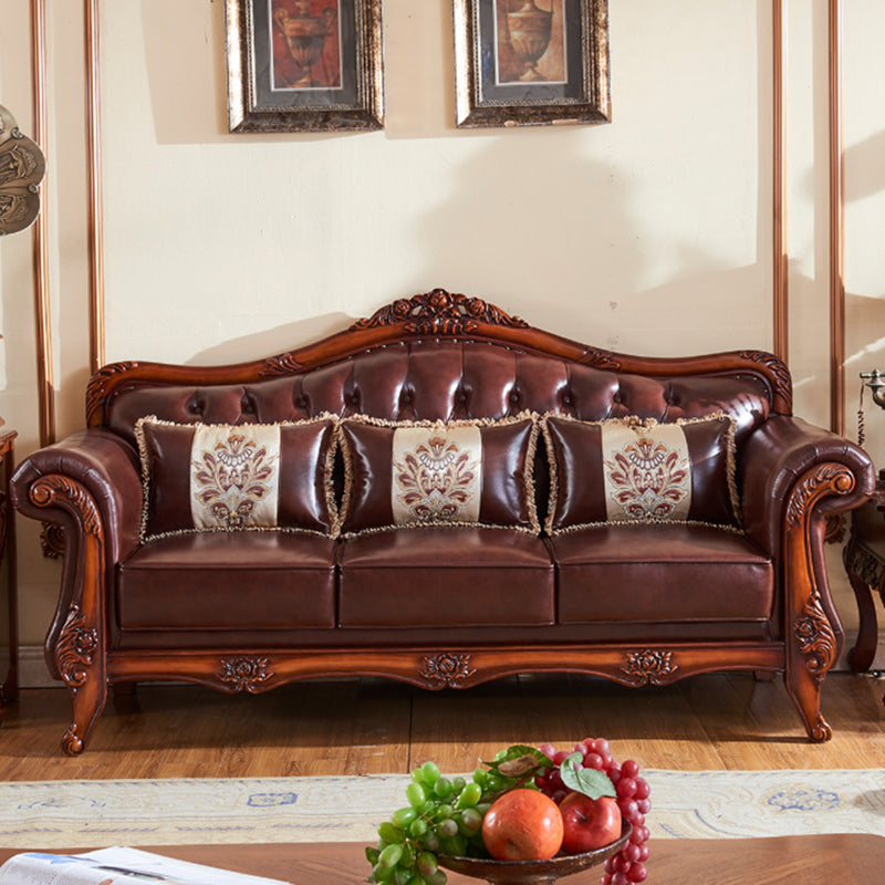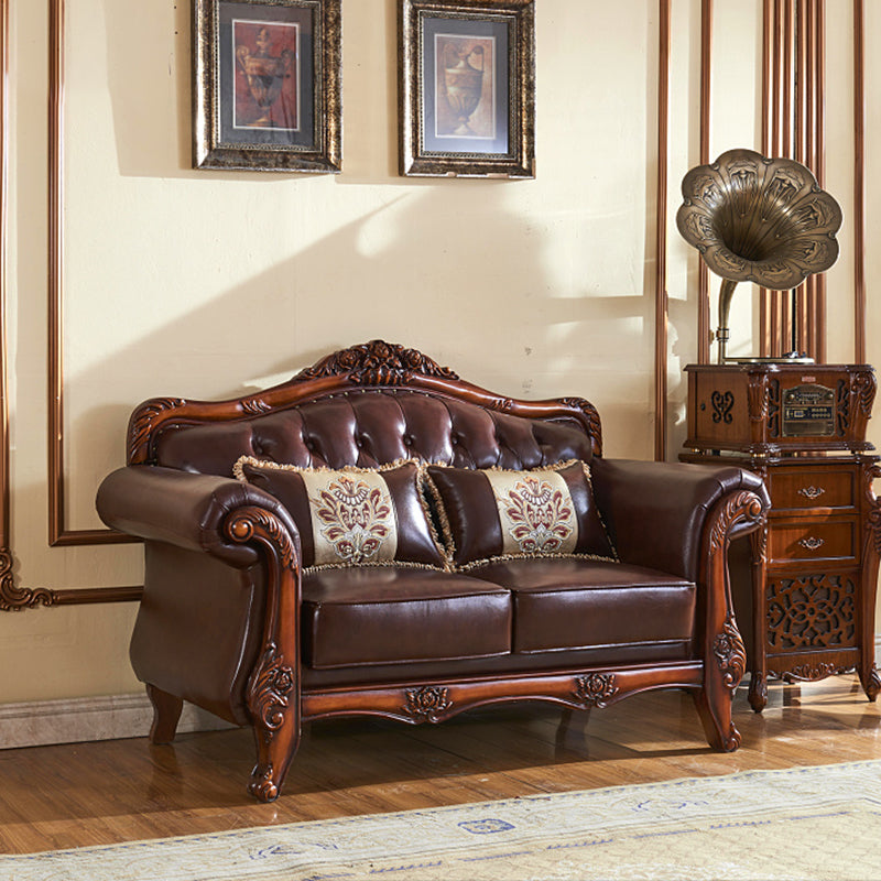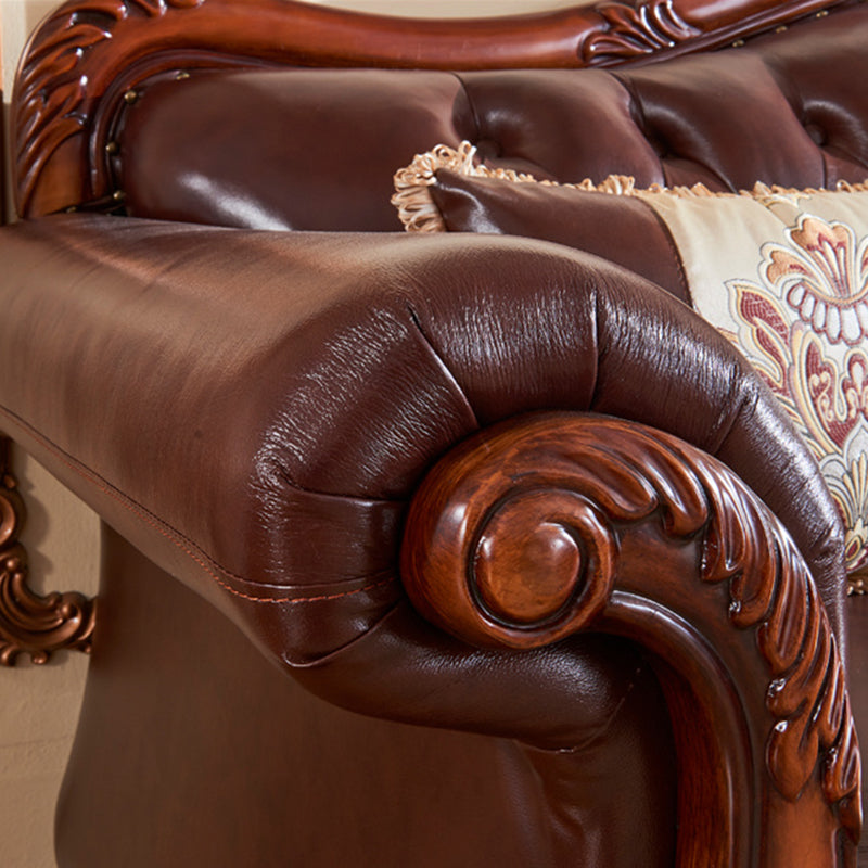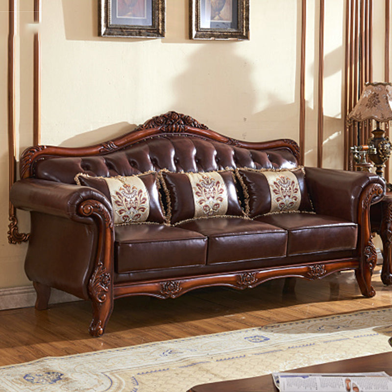 Sofá de cuero genuino Sofá con brazo enrollado con retroceso en marrón