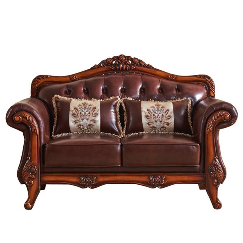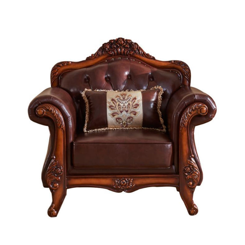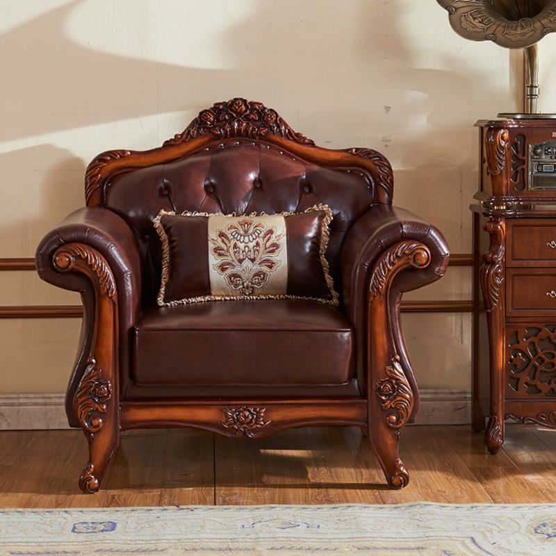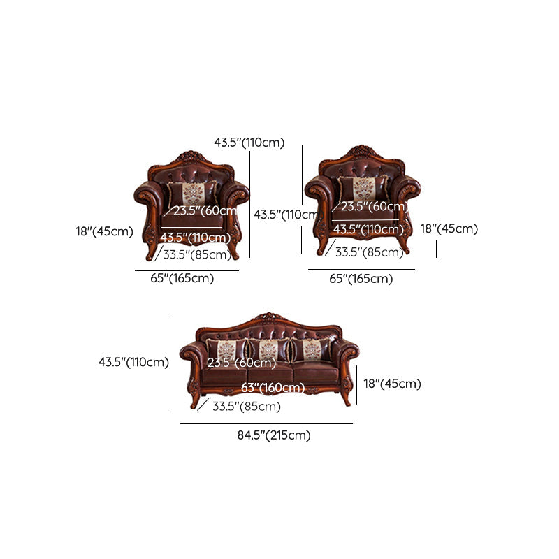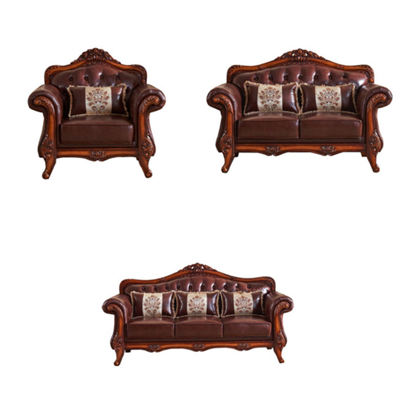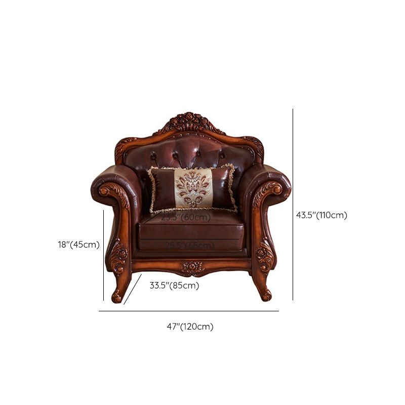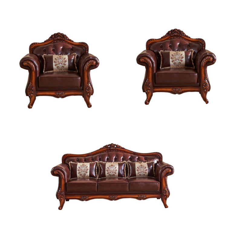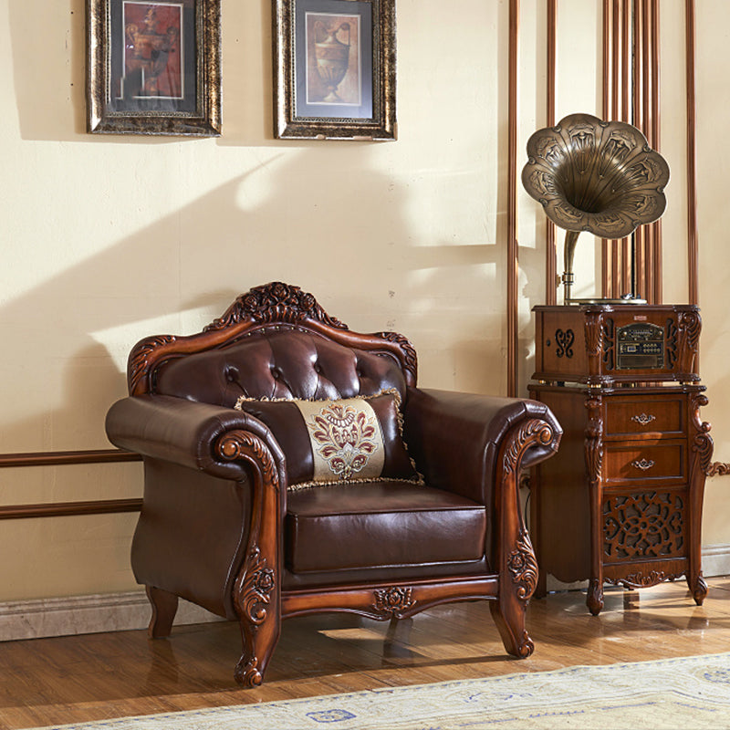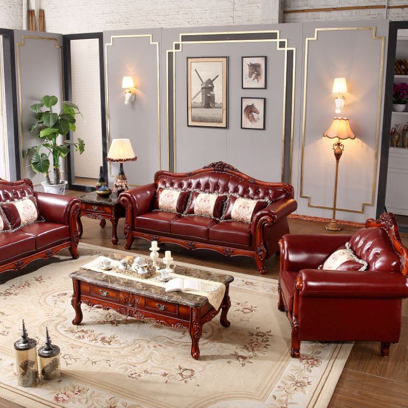 Sofá de cuero genuino Sofá con brazo enrollado con retroceso en marrón