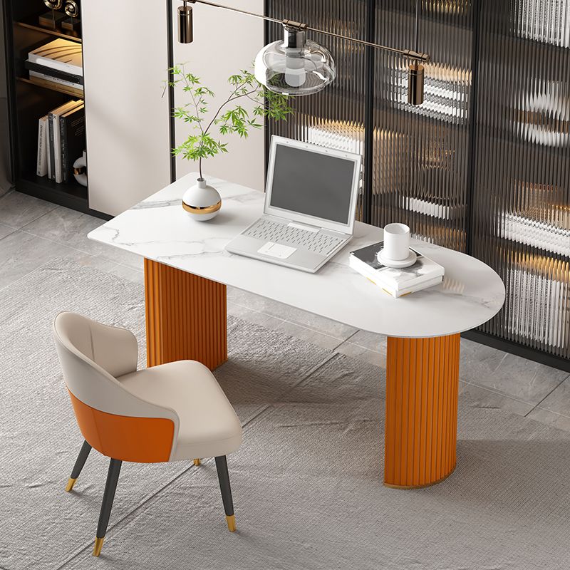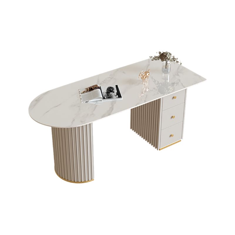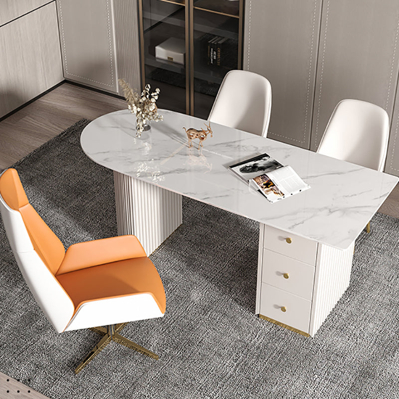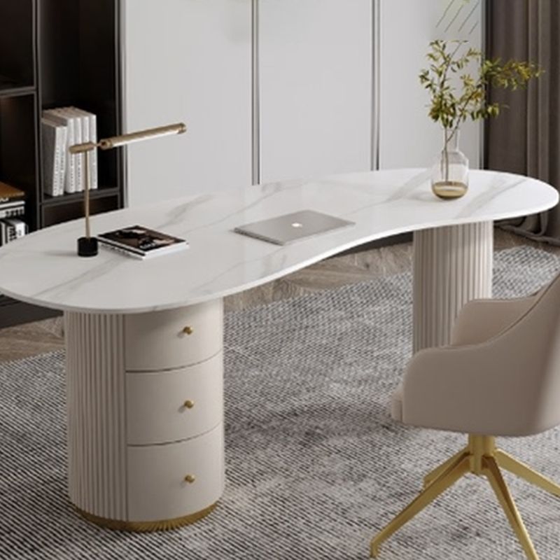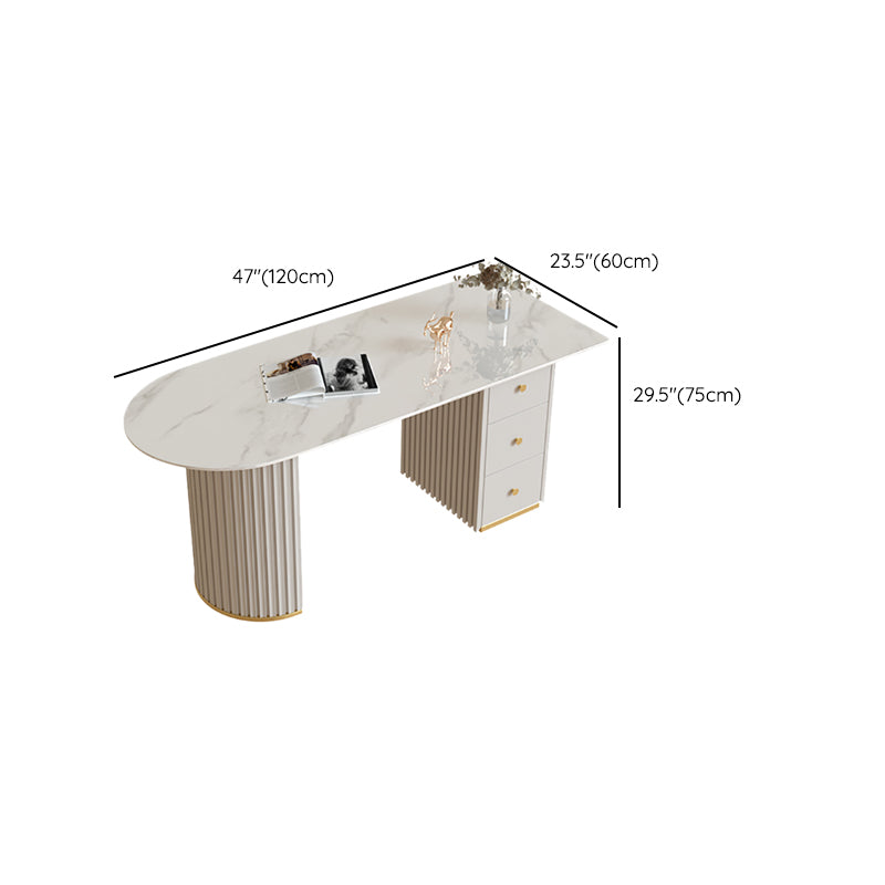 Escritorio de oficina de medio círculo de piedra Glam Stone 29.53 pulgadas de alto escritorio de escritura