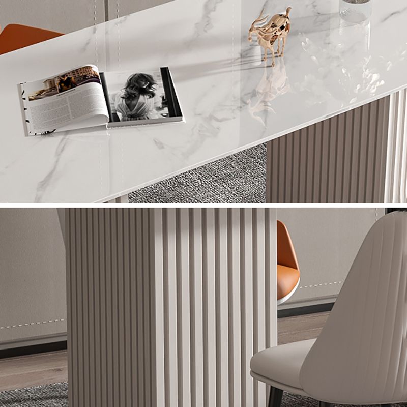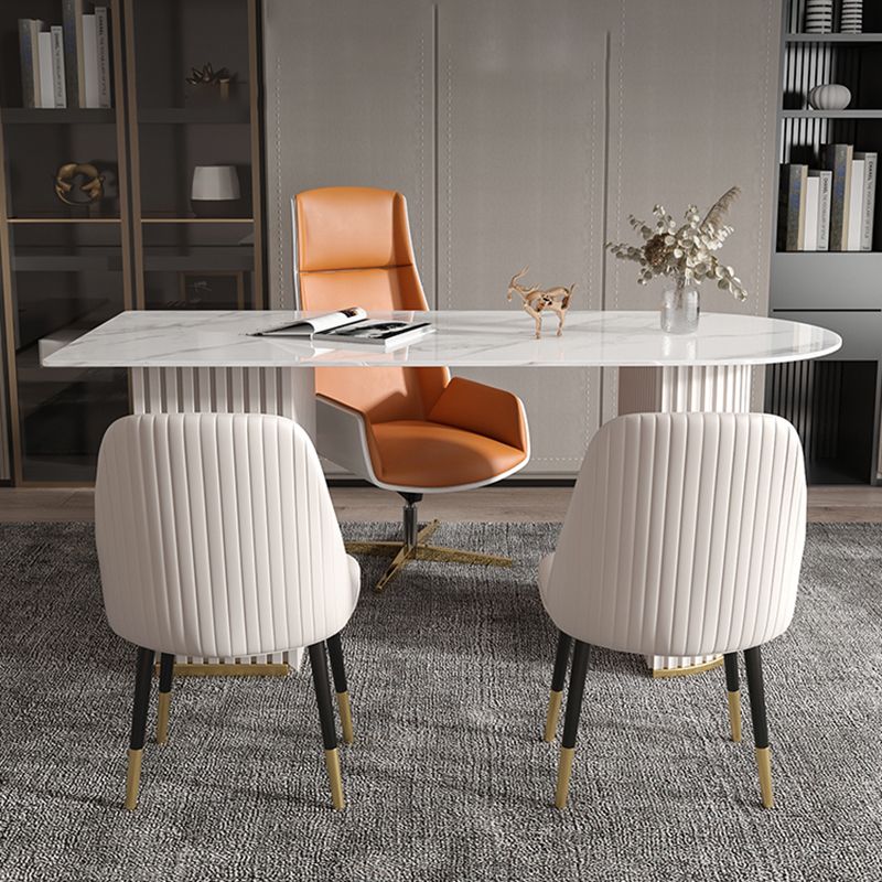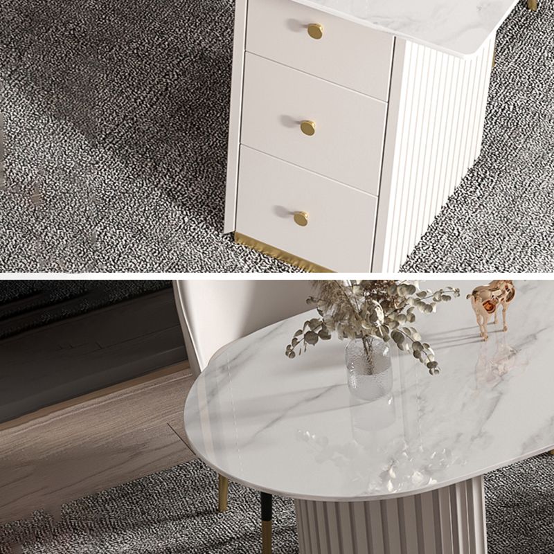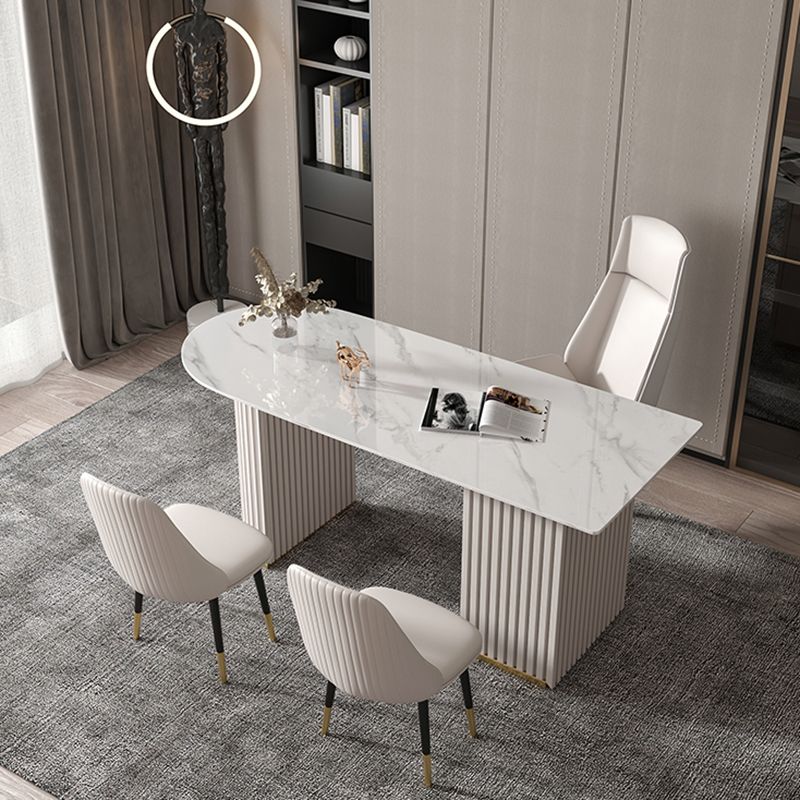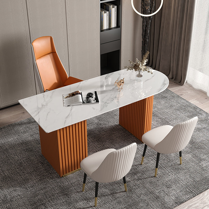 Escritorio de oficina de medio círculo de piedra Glam Stone 29.53 pulgadas de alto escritorio de escritura
