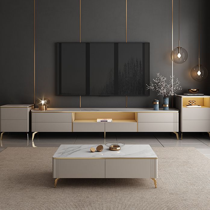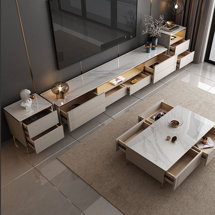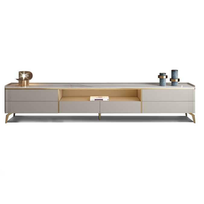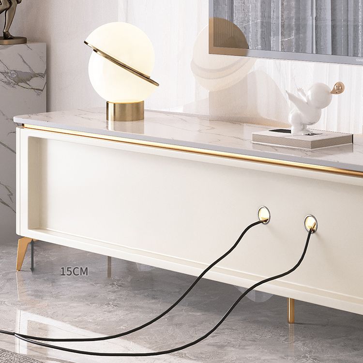 Glam White TV Media Consola 13.7 "Stand de televisión de altura con 6 cajones