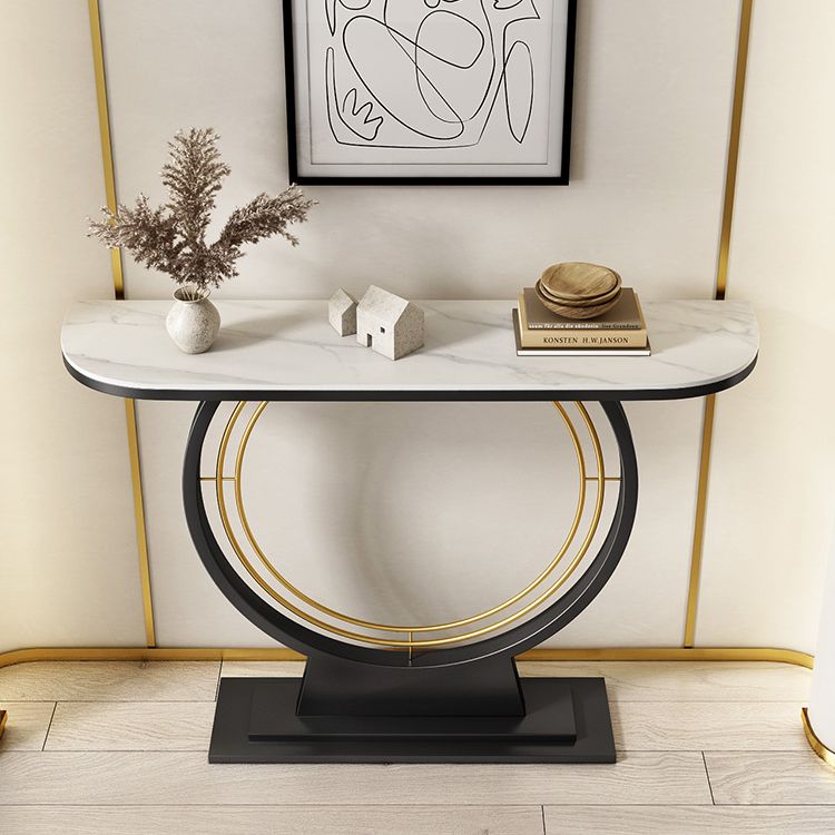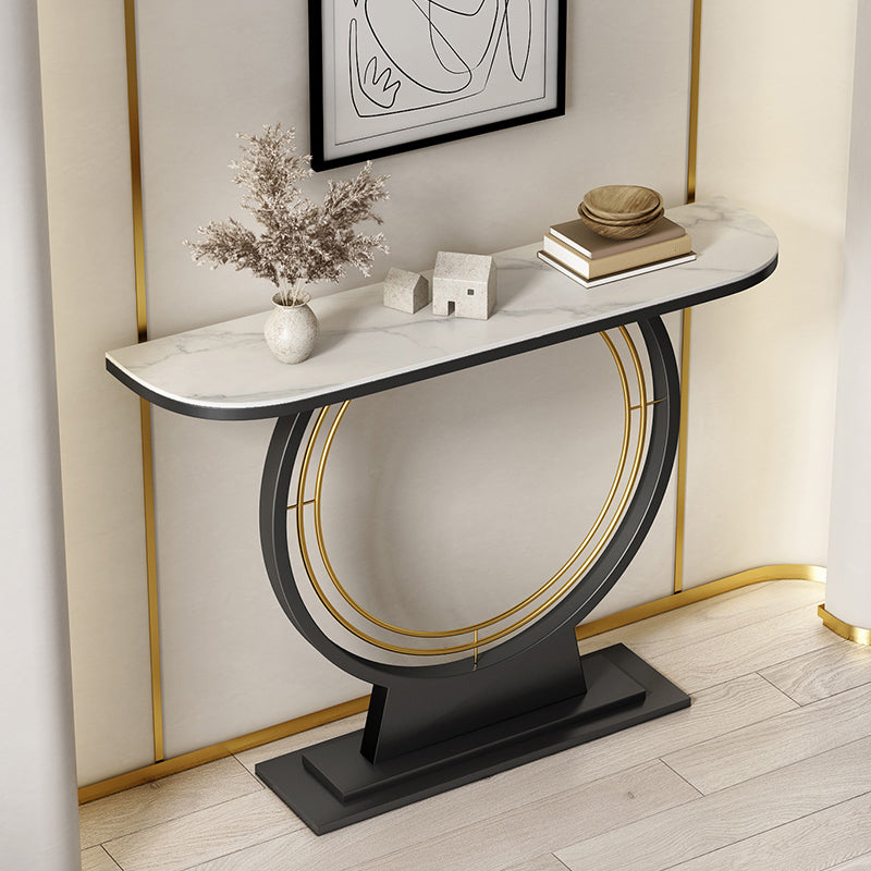 Mesa de acento de la consola de media luna Tabla de acabado antiguo Mesa de sofá en piedra