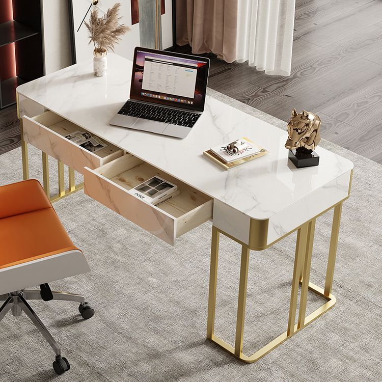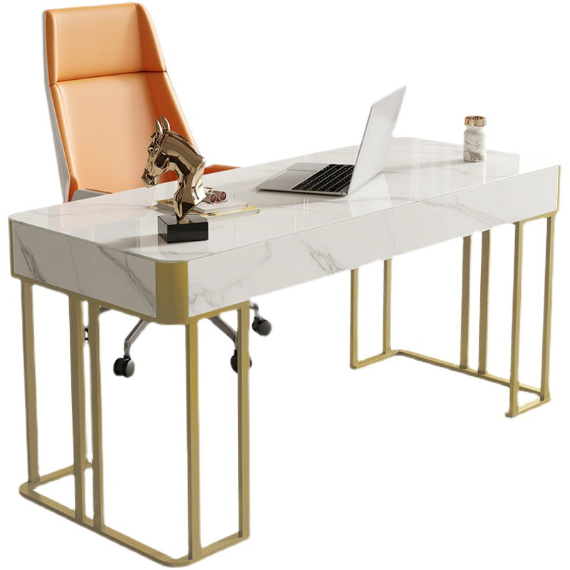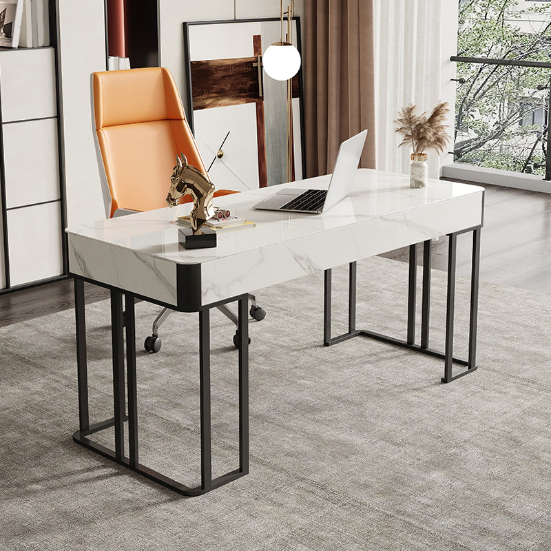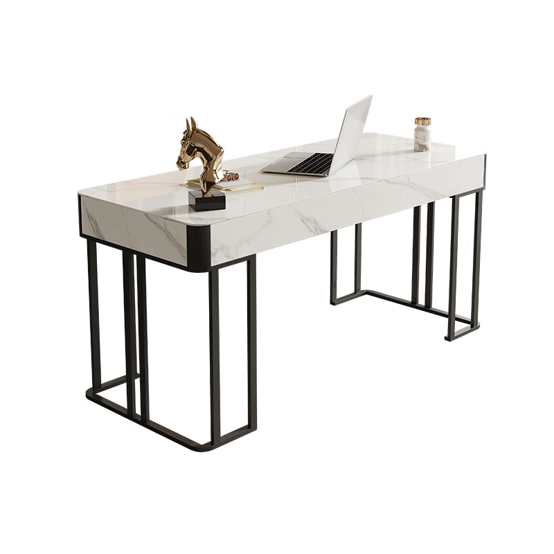 Escritorio de oficina rectangular en el hogar u oficina con escritorio de escritura base de metal
