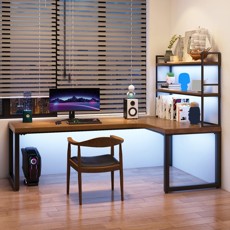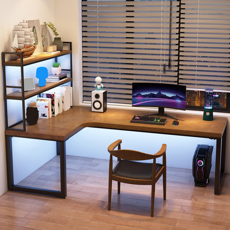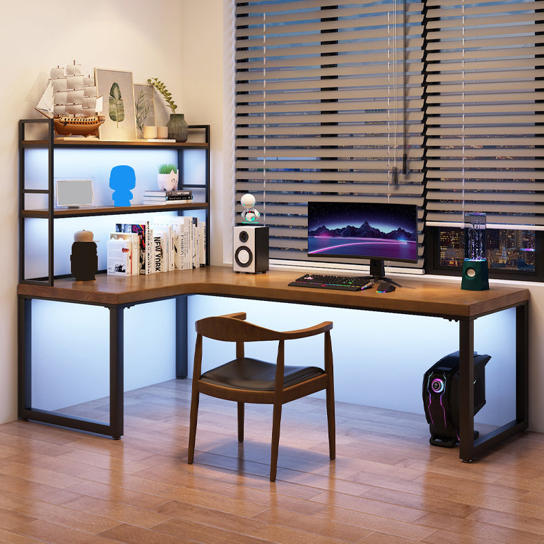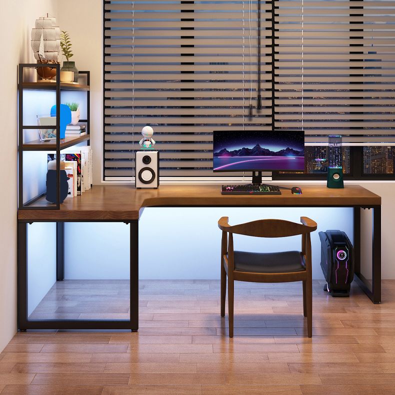 Descrito industrial de la oficina L-shape escritorio de escritura de madera sólida con patas de metal