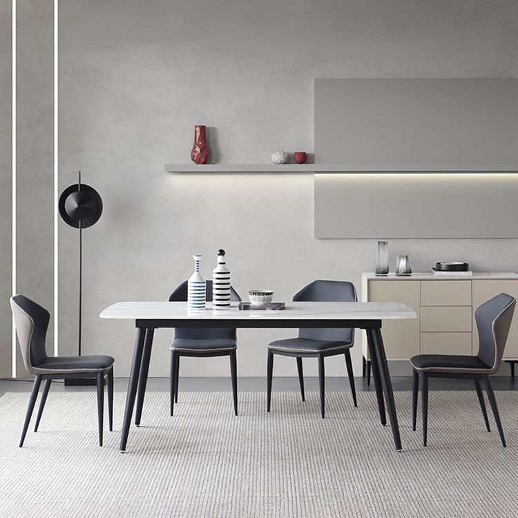 Mesa de cena de piedra rectangular industrial mesa de comedor de base de trípode negro