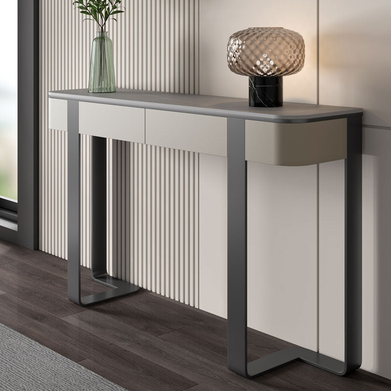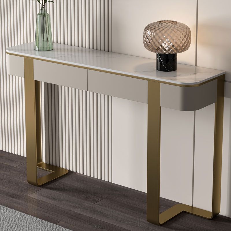 Mesa de acento moderno Stone Half Moon Console Mesa con 1 estante, 33.46 "de alto