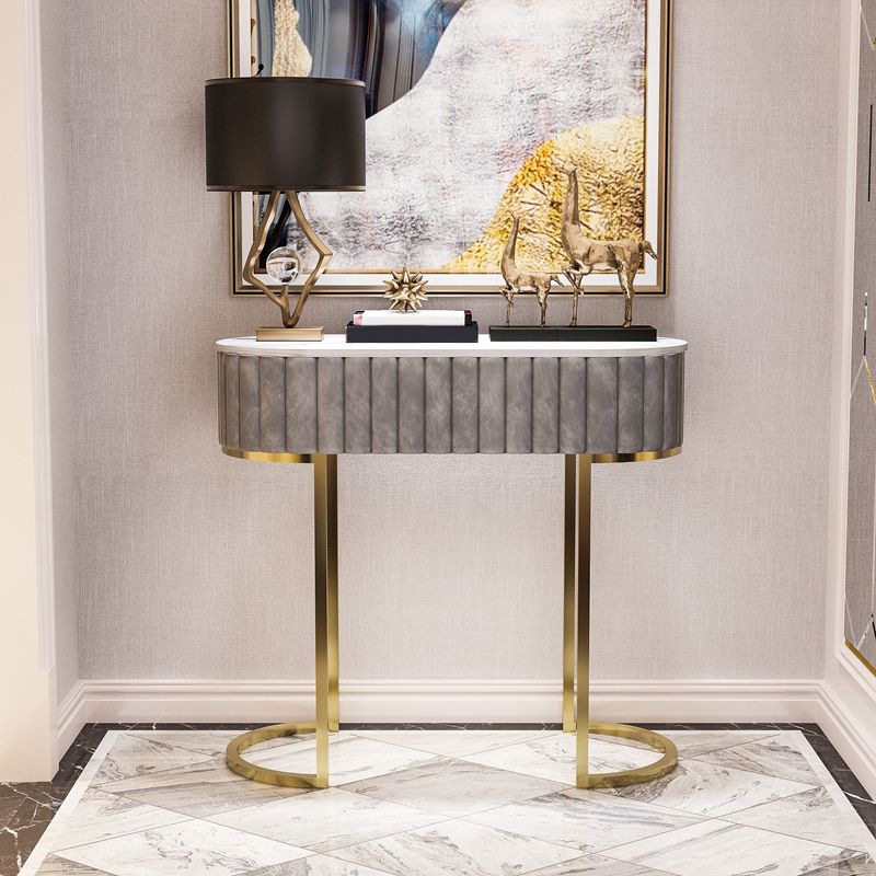 Mesa de consola de mármol oval de la mesa de acento de marco Ironcraft para el salón