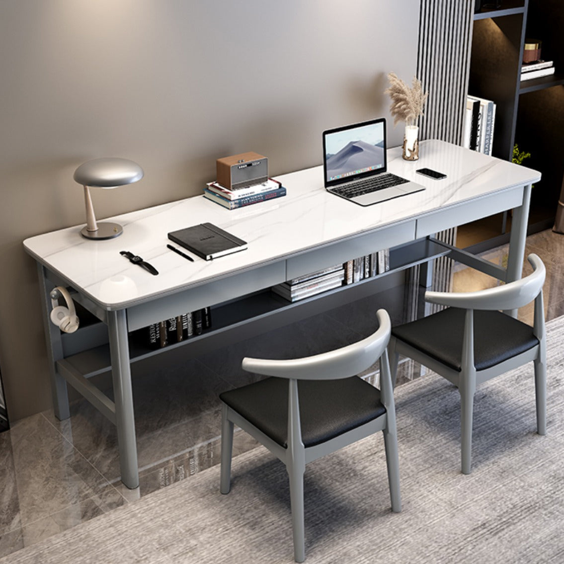 Escritorio de tareas de piedra de forma rectangular 4 patas de escritura de escritura para el hogar