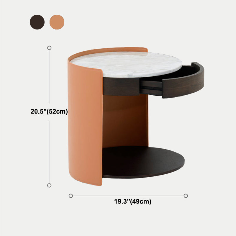 Mesa de noche moderna de la tapa de mármol redonda, 19.3 "W x 20.5" H