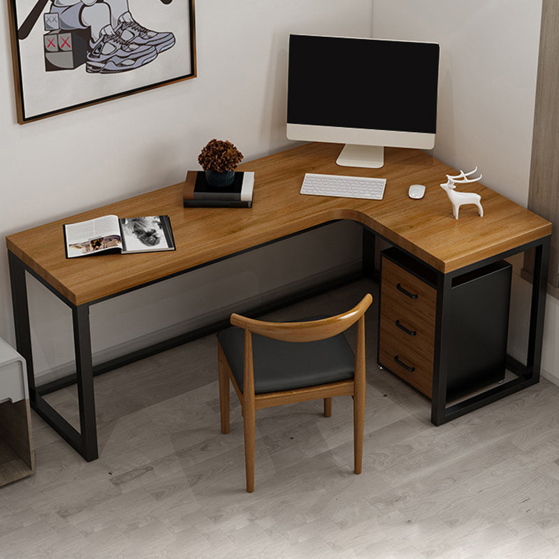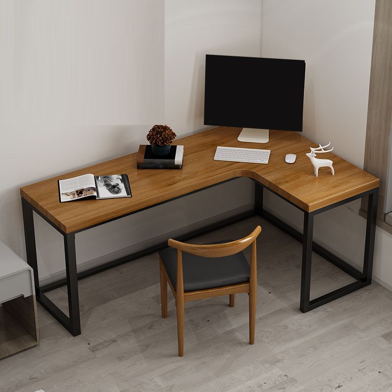 Escritorio de escritura de madera sólida escritorio de oficina marrón industrial en forma de L