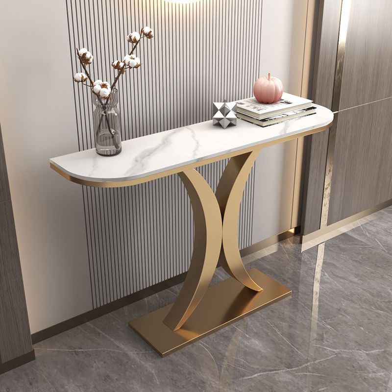 Stone Half Moon Console Table Table de acento de 31.5 pulgadas de altura para Hall