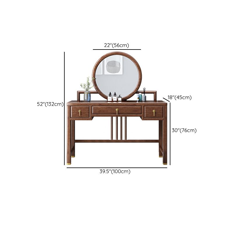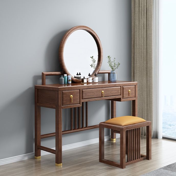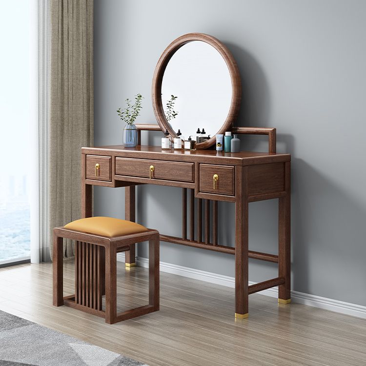 Tradicional 3 cajones de madera de nogal Magno de maquillaje Magno de escritorio en marrón