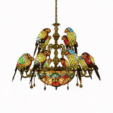 Lámpara colgante de loro de 12 brazos, lámpara de araña rústica de vidrieras con cuenco central en amarillo