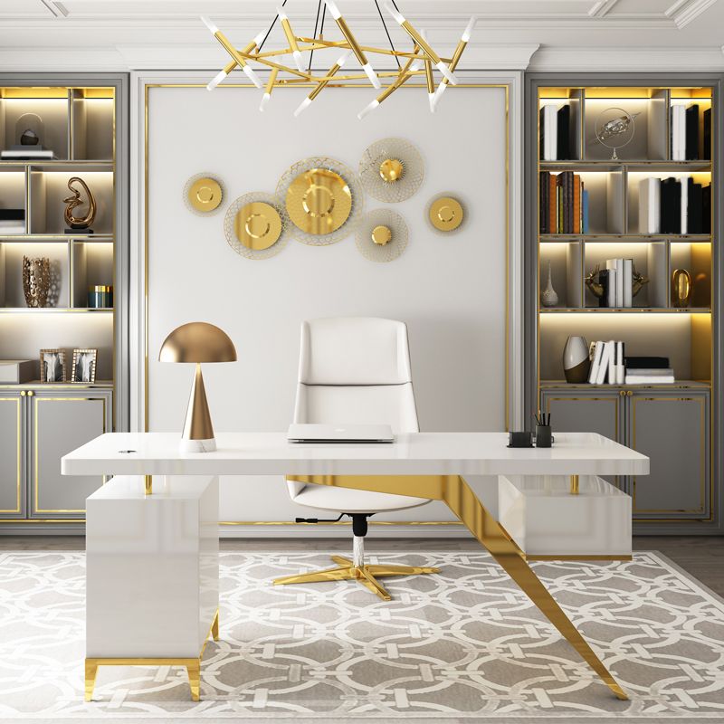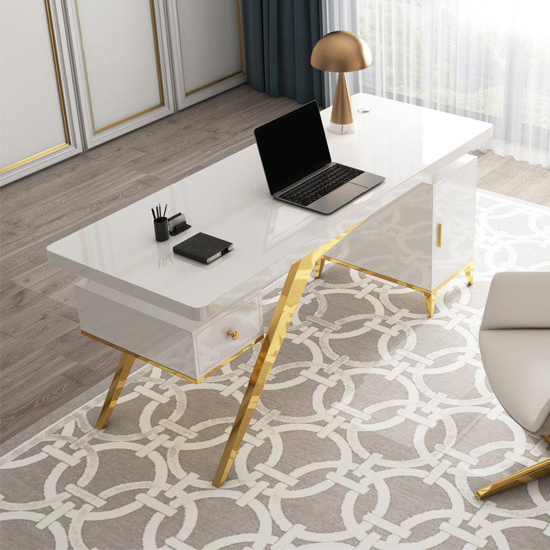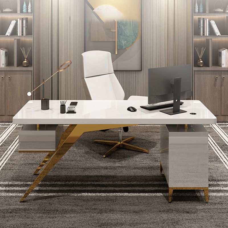 Escritorio de oficina artificial y acero Descrito de escritura de pedestal con archivador
