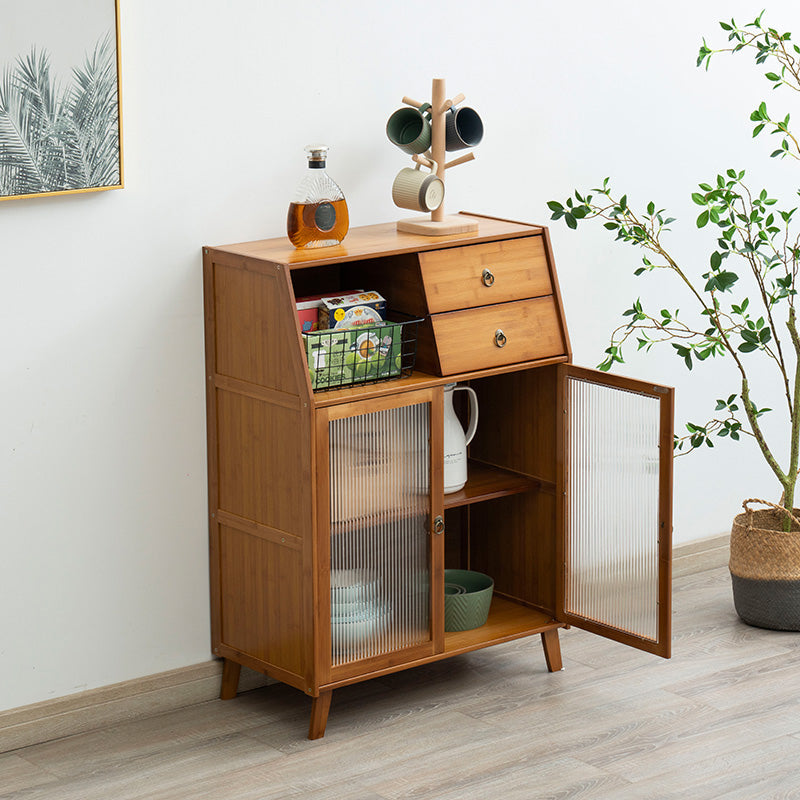 Mesa de vidrio de gabinete de aparador de bambú marrón contemporáneo
