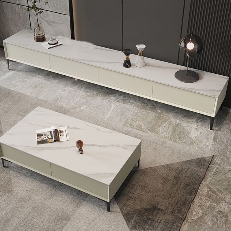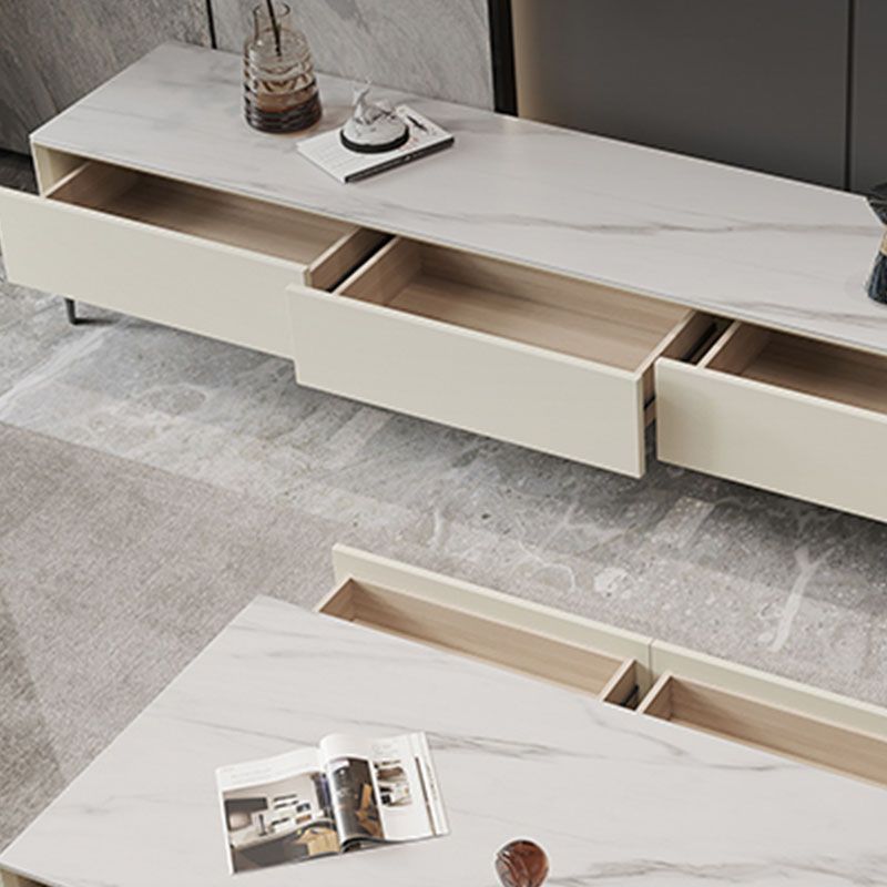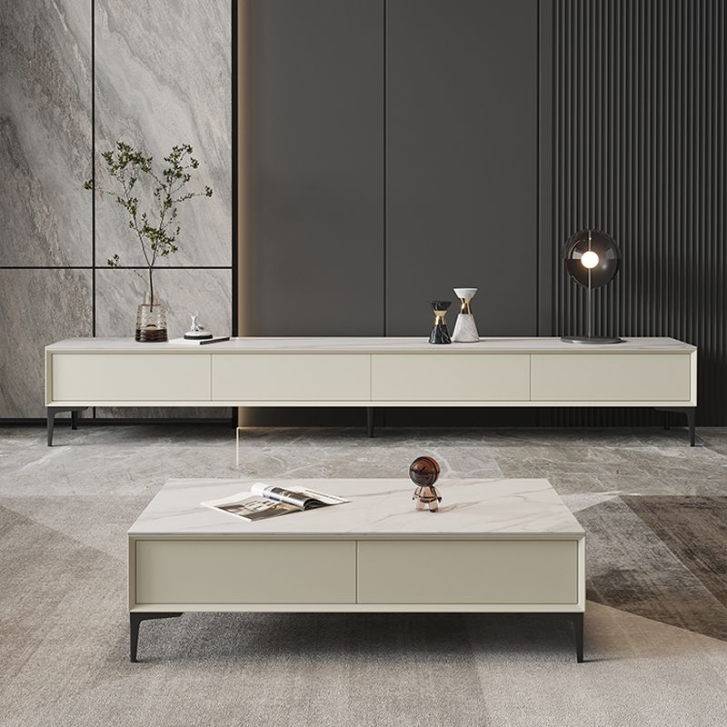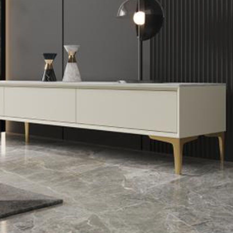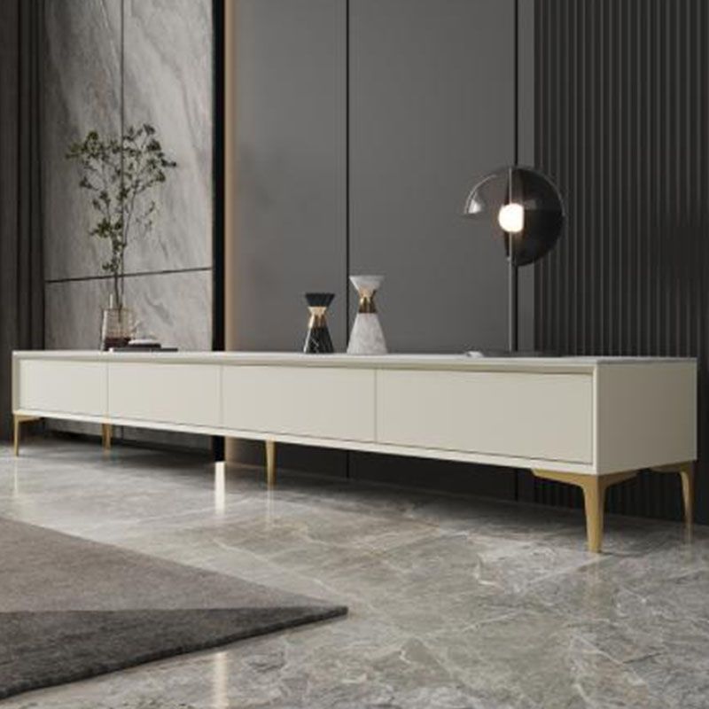Consola de TV contemporánea, soporte de televisión blanca mate/ brillante con 4 cajones