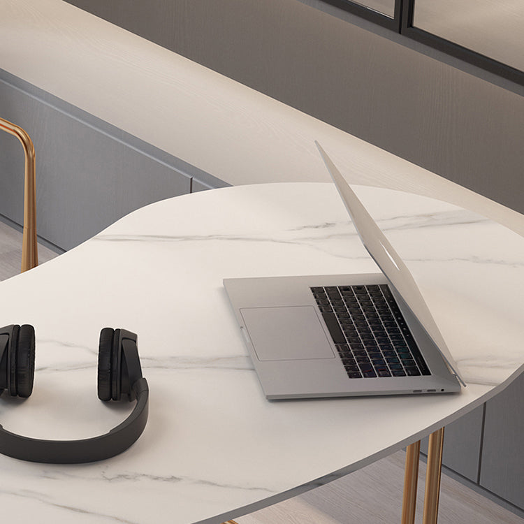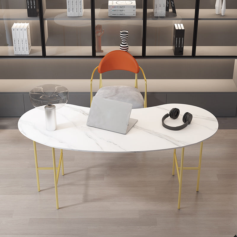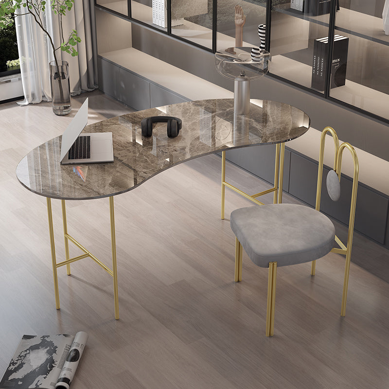 Escritorio de escritura curva glamorosa escritorio de oficina de piedra casera con patas de metal