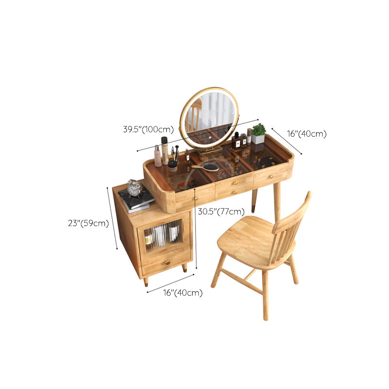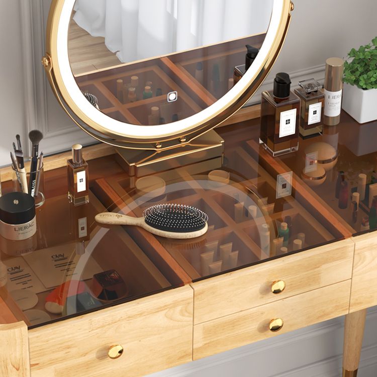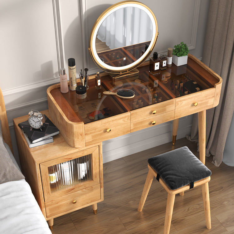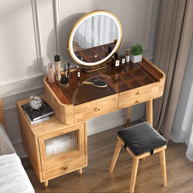 Cajones de tocador de vidrio Tocador de taburete con luces Mirror
