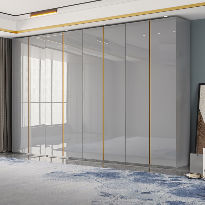 Gabinete de almacenamiento gris alto en brillo gabinete moderno con puertas con bisagras