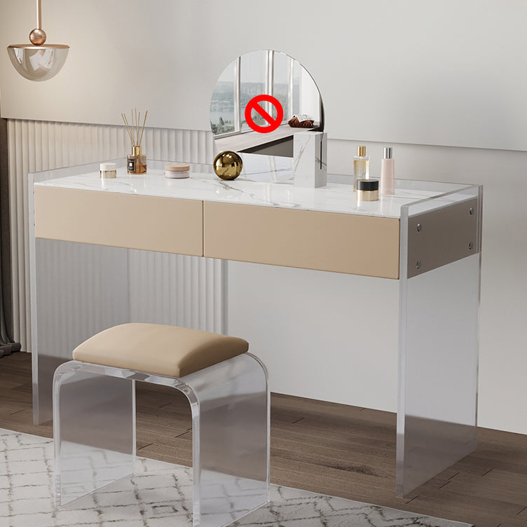 Juego de tocador de maquillaje contemporáneo de mármol /acrílico con 2 cajones para dormitorio