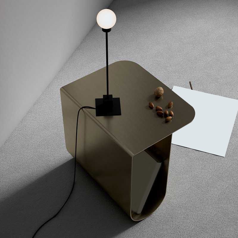 Mesa de metal rectangular de estilo moderno de mediados de siglo con mesa lateral base abstracta