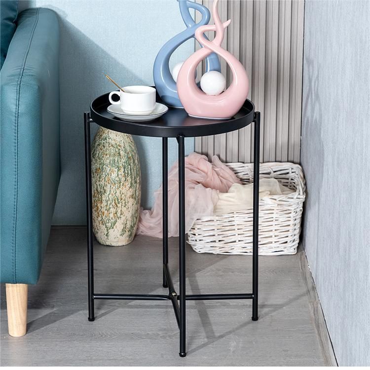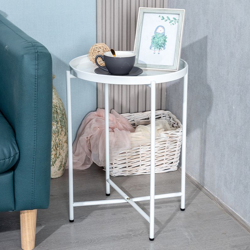 Mesa de las patas cruzadas modernas Mesa de esquina de la bandeja redonda de la parte superior del lado del lado