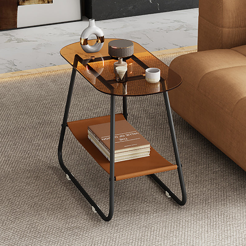 Moderia de vidrio de vidrio de vidrio con almacenamiento de mesa lateral de doble nivel ovalado