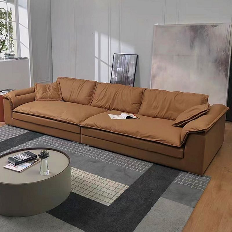 Moderno sofá de cuero de cuero marrón cojines de brazo de la almohada sofá y chaise