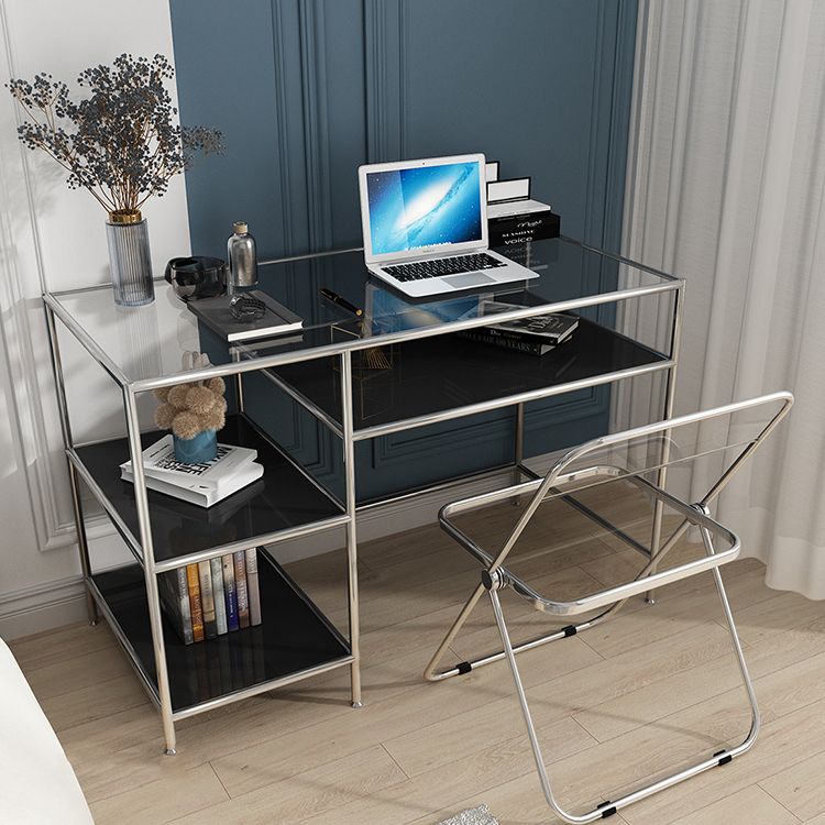 Escritorio de oficina moderno de escritorio rectangular de madera con estantes, 23.62 "W
