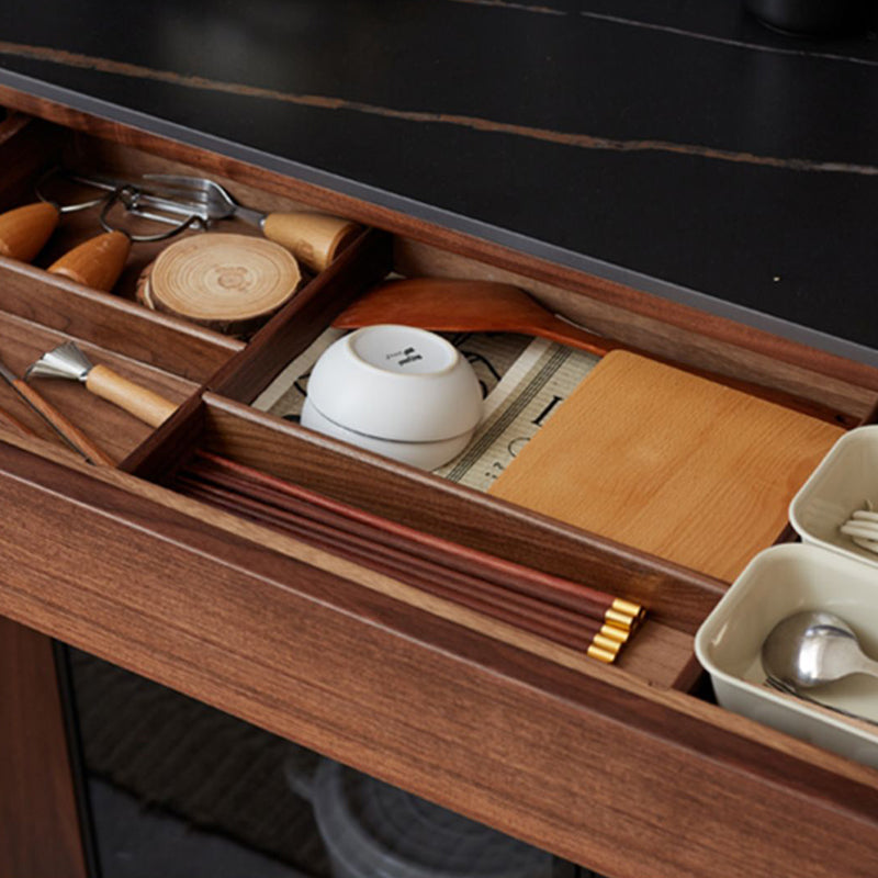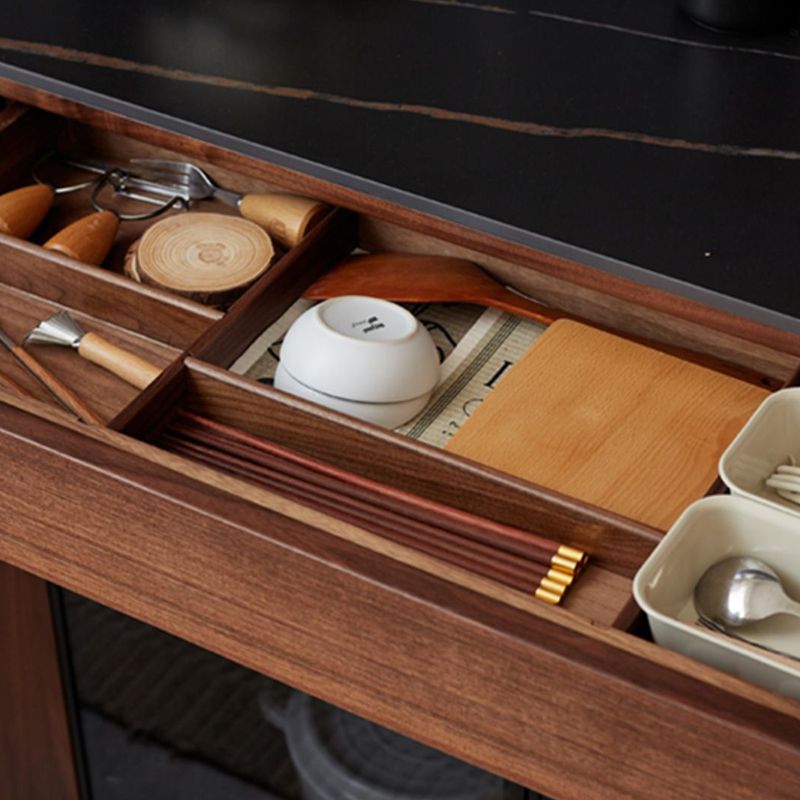 Aparador de madera maciza moderna con 3 cajones puerta de vidrio en marrón