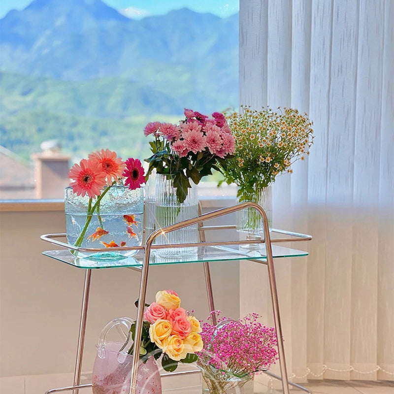 Vidrio modernista con mesa rectangular de la sala de estar de doble nivel rectangular