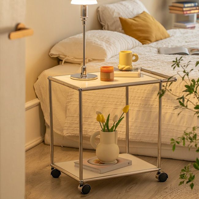 Mesa lateral de metal/vidrio rectangular con estilo moderno de base entre la base de la mitad del siglo