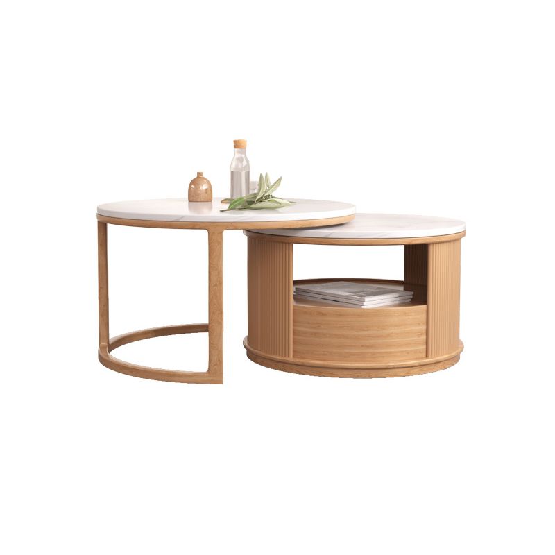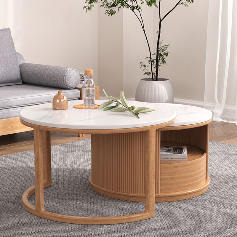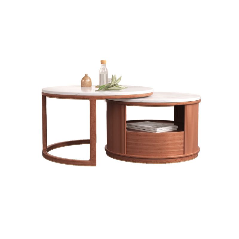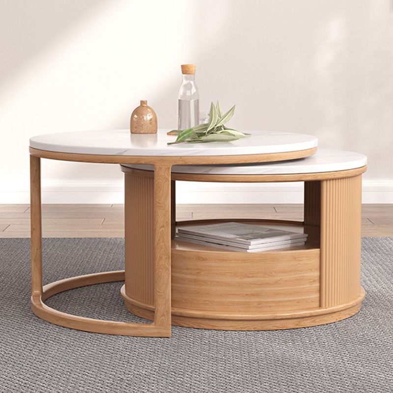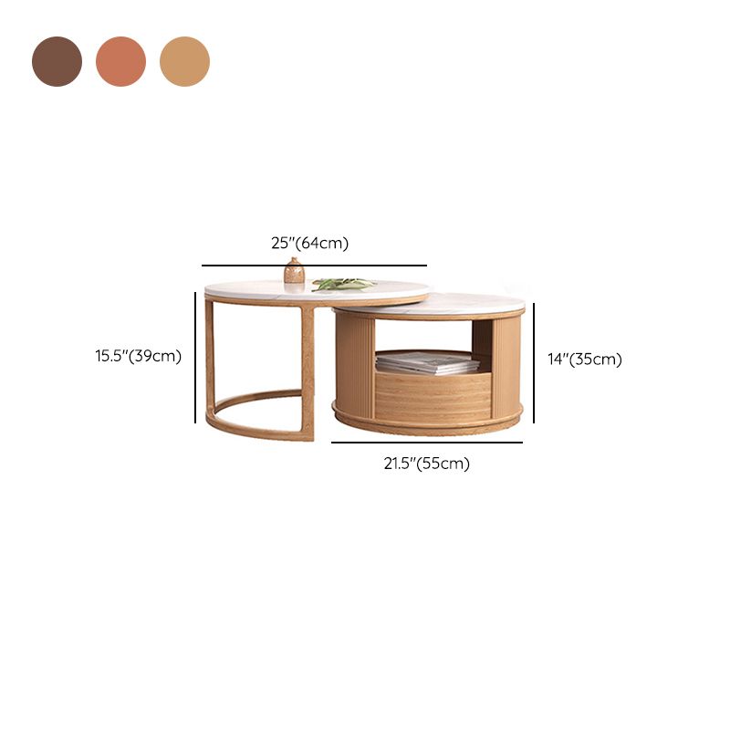 Mesa de café redonda de mesa de café juego con estante de almacenamiento