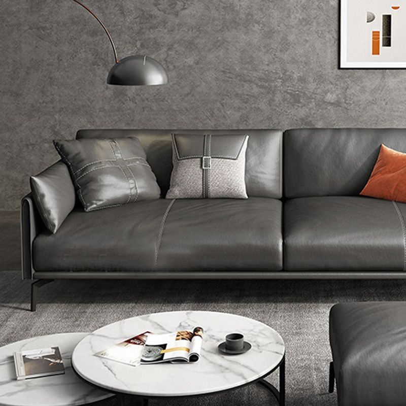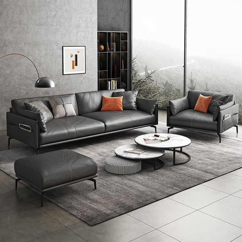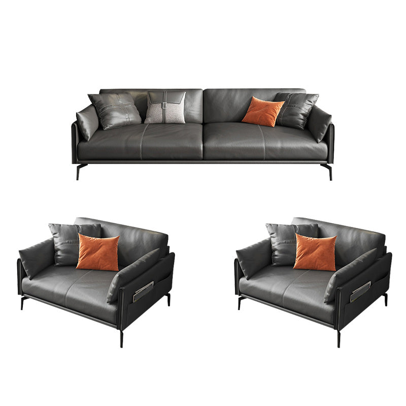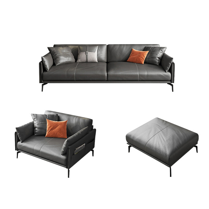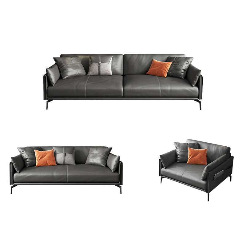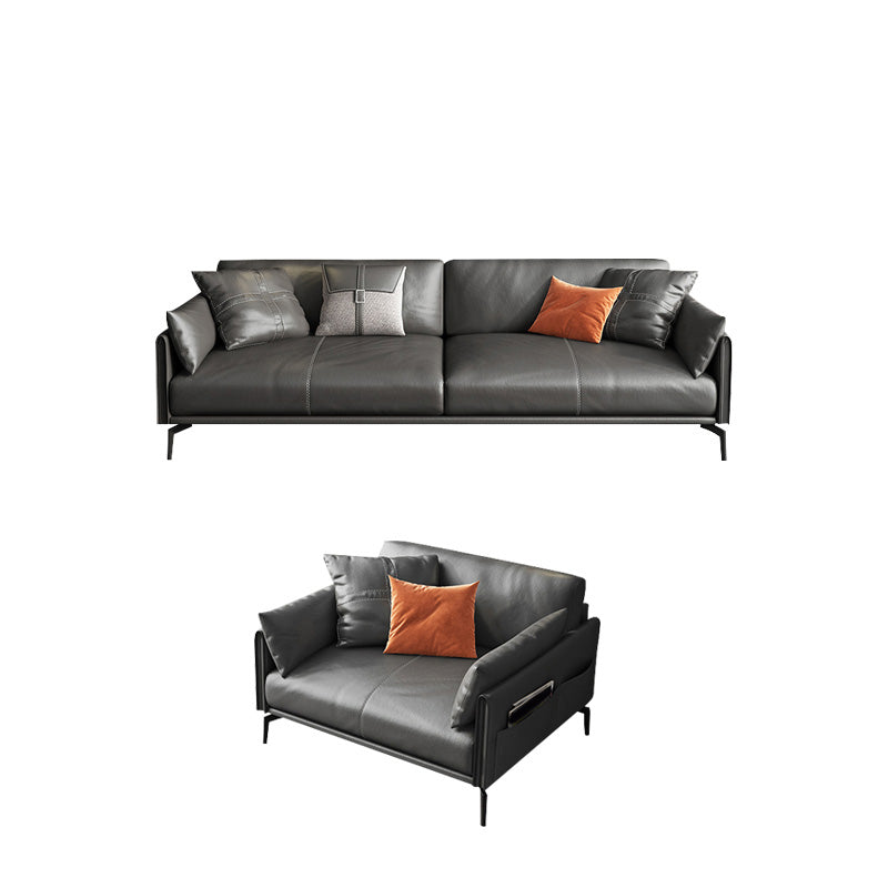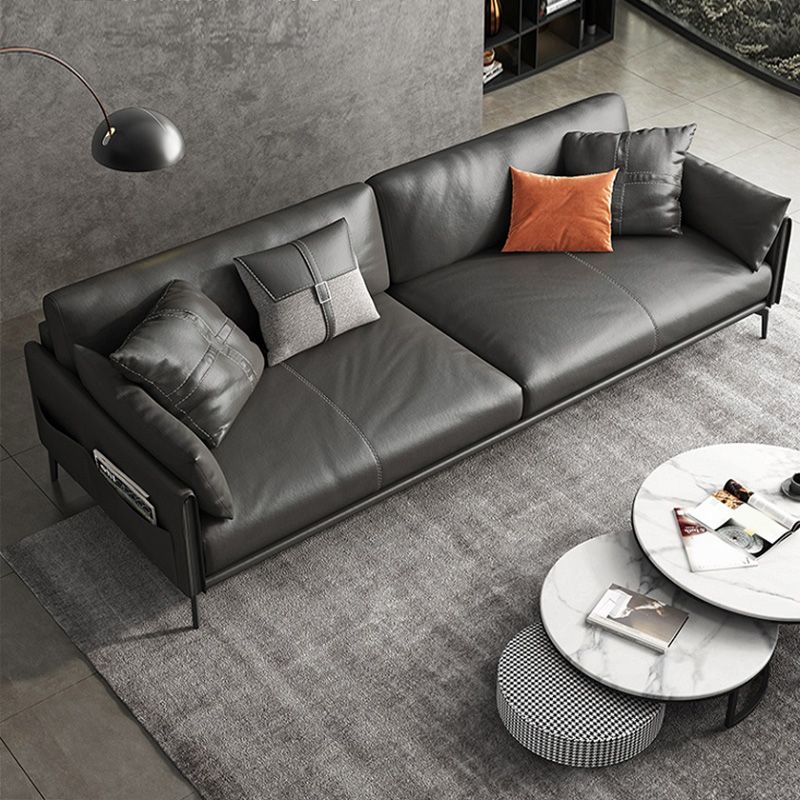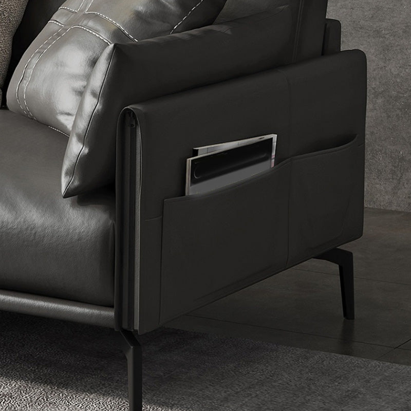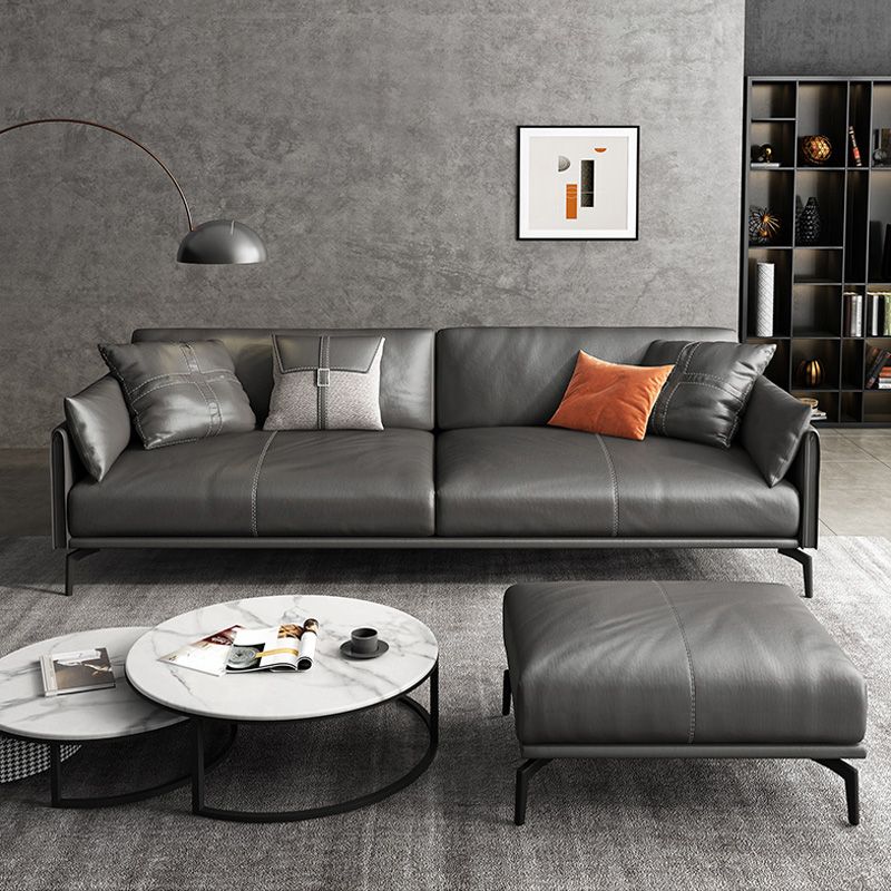 Sofá de brazo cuadrado 33.46 "Sofá de cuero genuino alto con espalda suelta