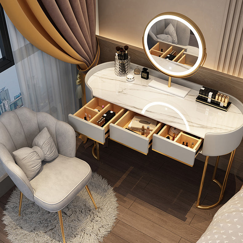 Descripción de tocador de maquillaje de pie Magno de espejo iluminado Conjunto de tocador con cajón