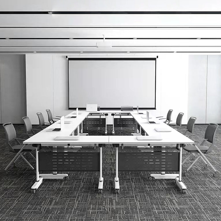 Escritorio plegable blanco escritorio fabricado con escritorio rectangular de madera fabricada con ruedas con ruedas