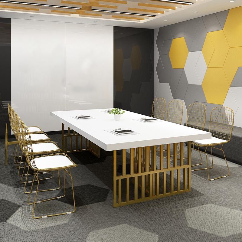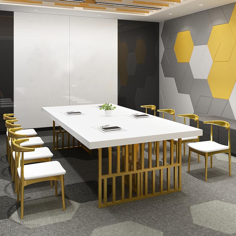 Escritorio de escritura de madera de pino blanca escritorio de base de hierro dorado escritorio rectangular