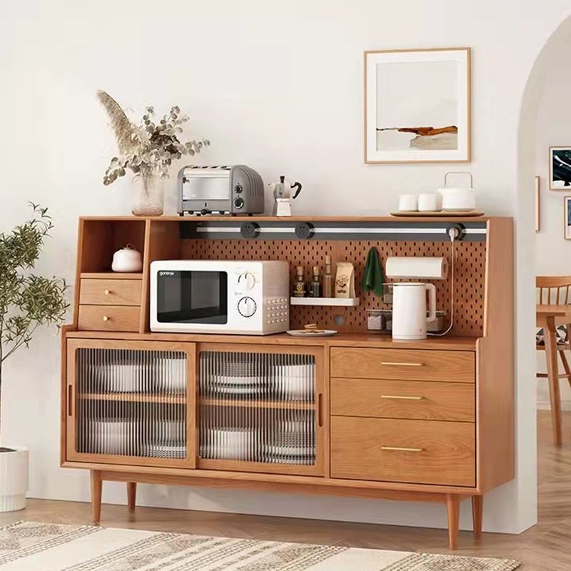 Puertas de vidrio de caña contemporánea de madera gabinete de porcelana con cajones
