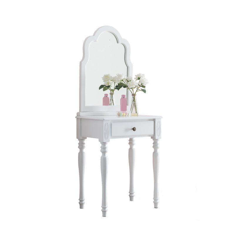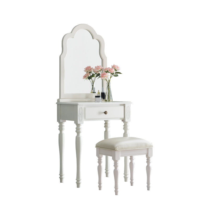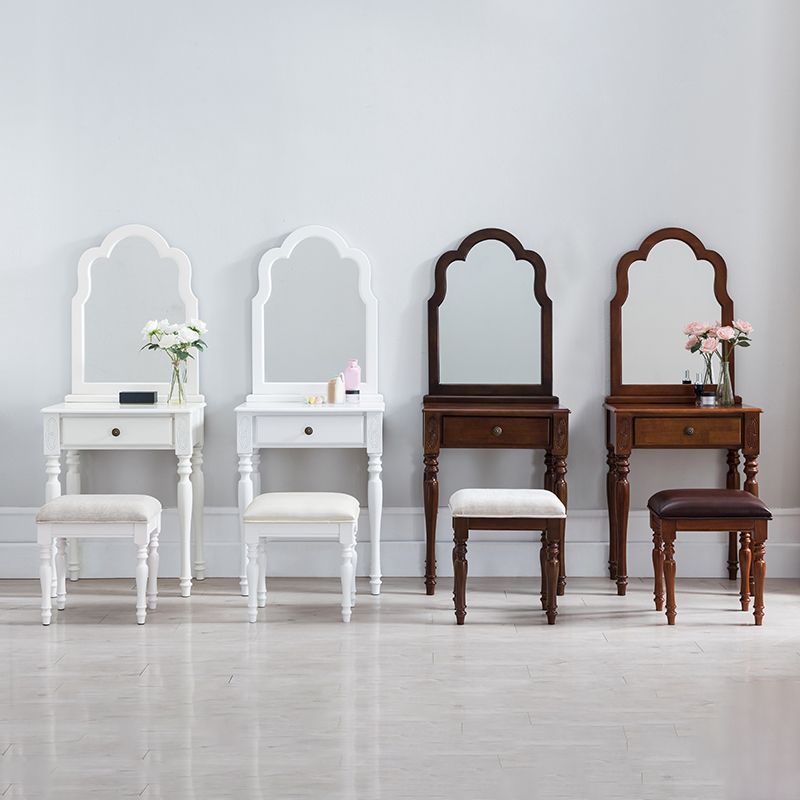Mesa de tocador de madera de 23.6 "W Juego de mesa de maquillaje de tocador de 1 cañón con espejo y taburetes