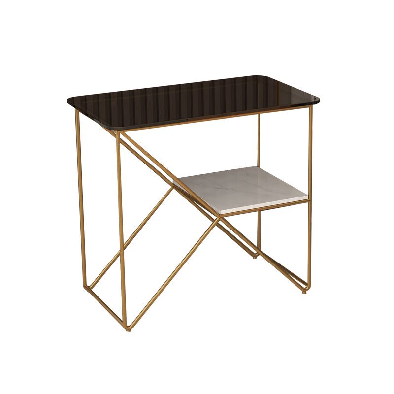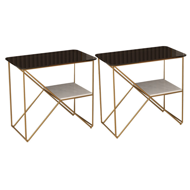 Mesa de noche de acento de metal de 25.59 "de 25.59" Mesa de noche industrial con 2 estantes