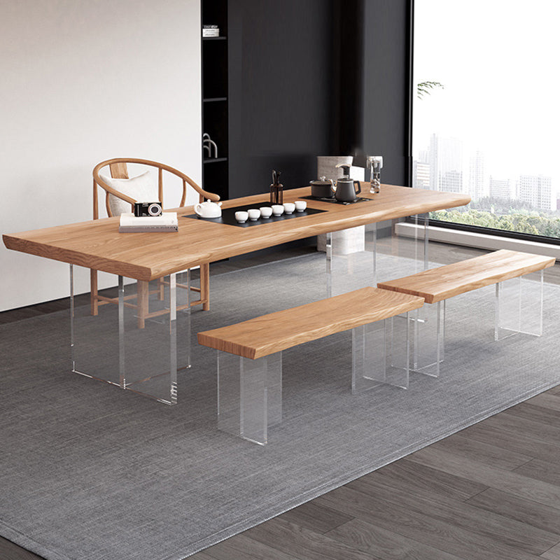 Escritorio de oficina moderno de 30 "H escritorio de oficina acrílico de madera maciza natural
